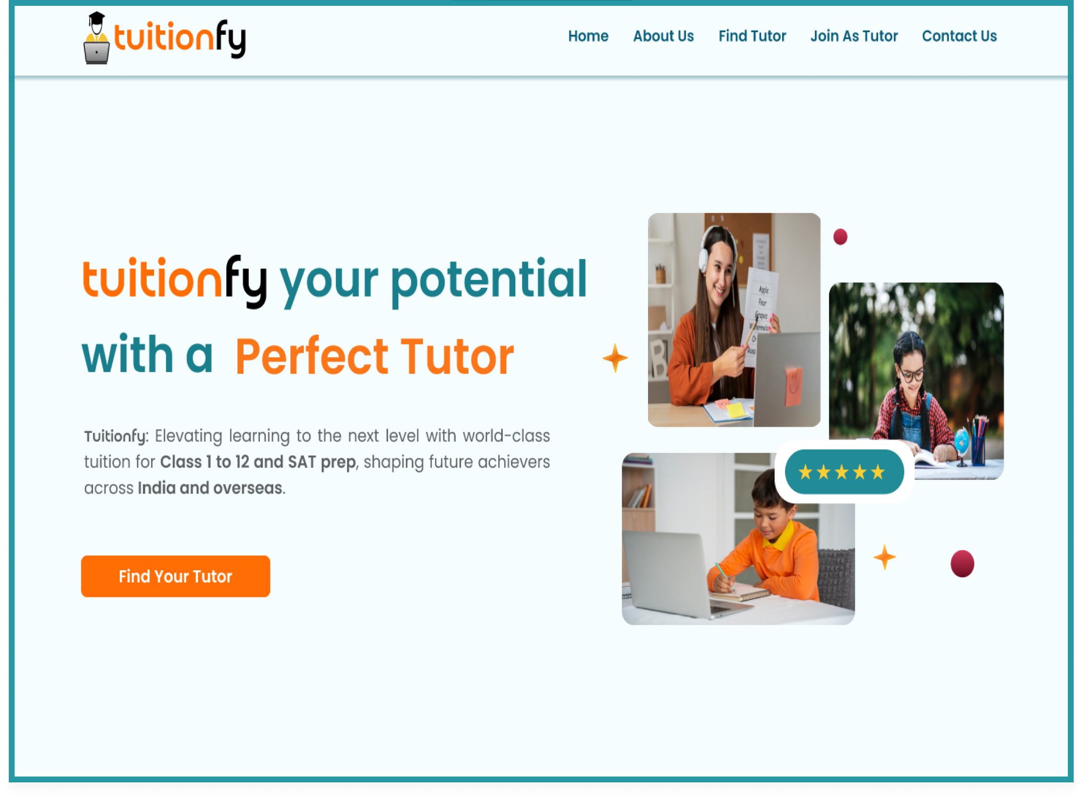 We developed tuitionfy, an innovative online and offline tutoring platform that connects students with qualified tutors for personalized learning. Whether in-person or virtual, the platform offers flexible scheduling, video lessons, and learning resources to enhance students educational experiences.